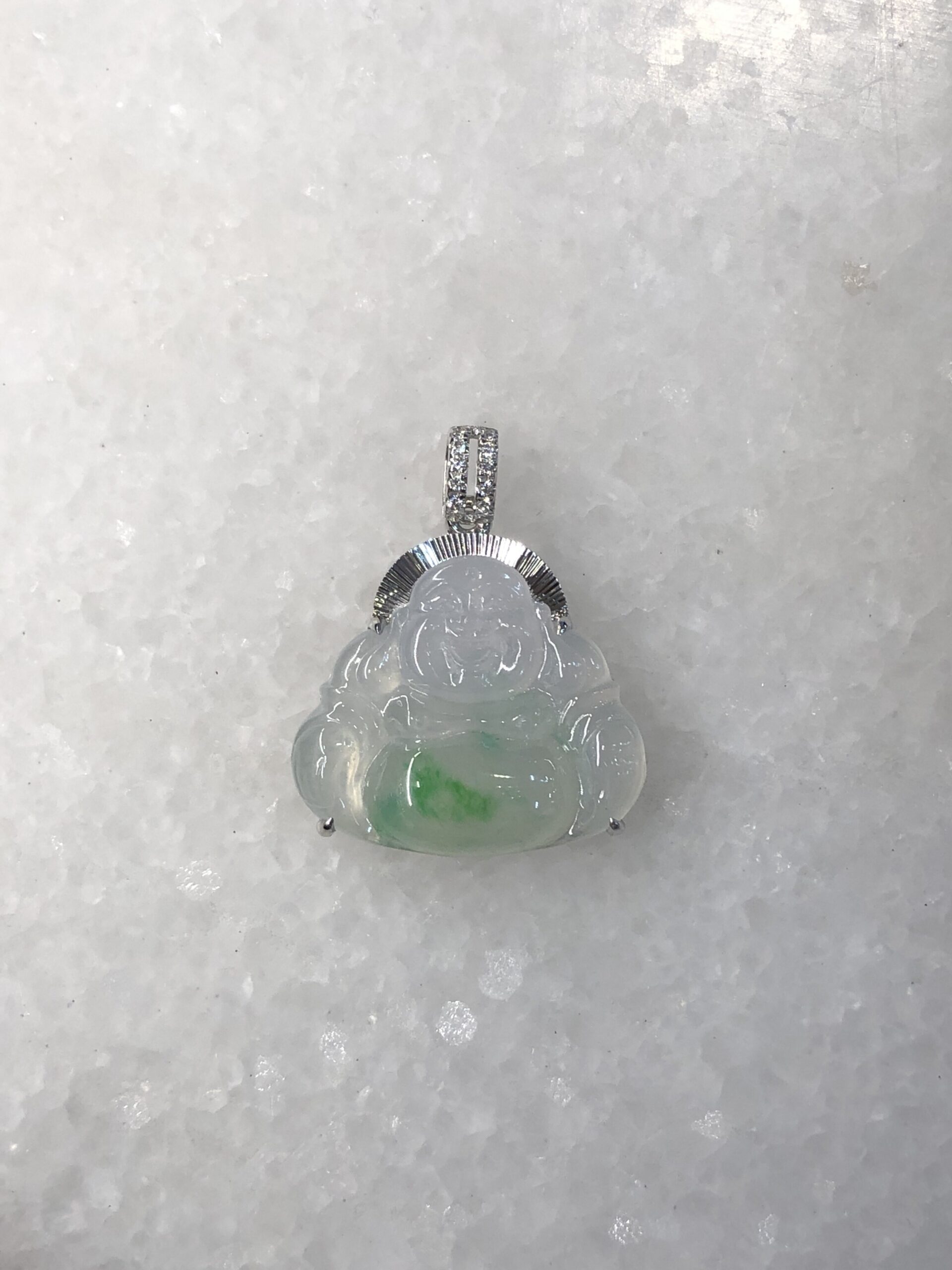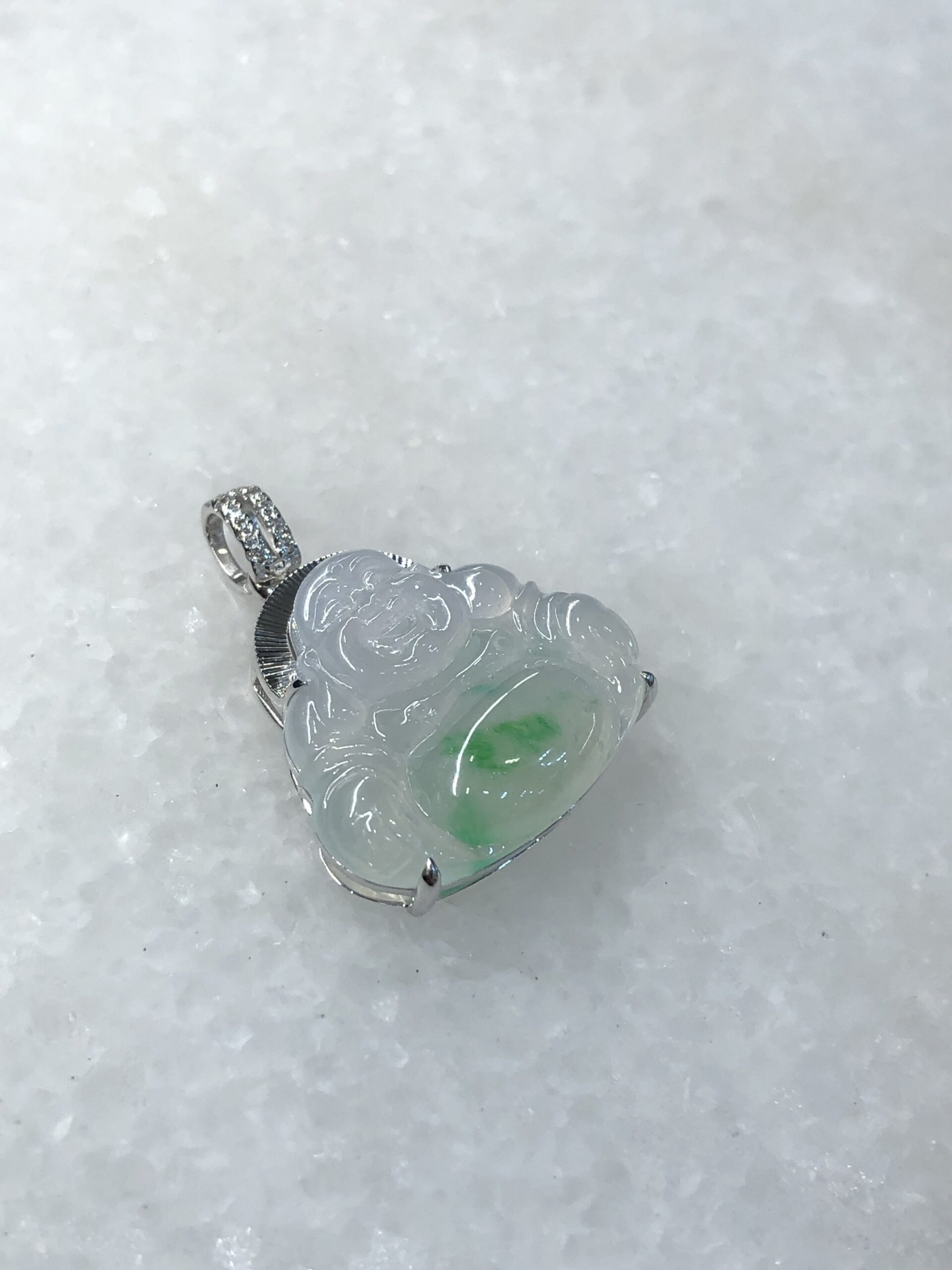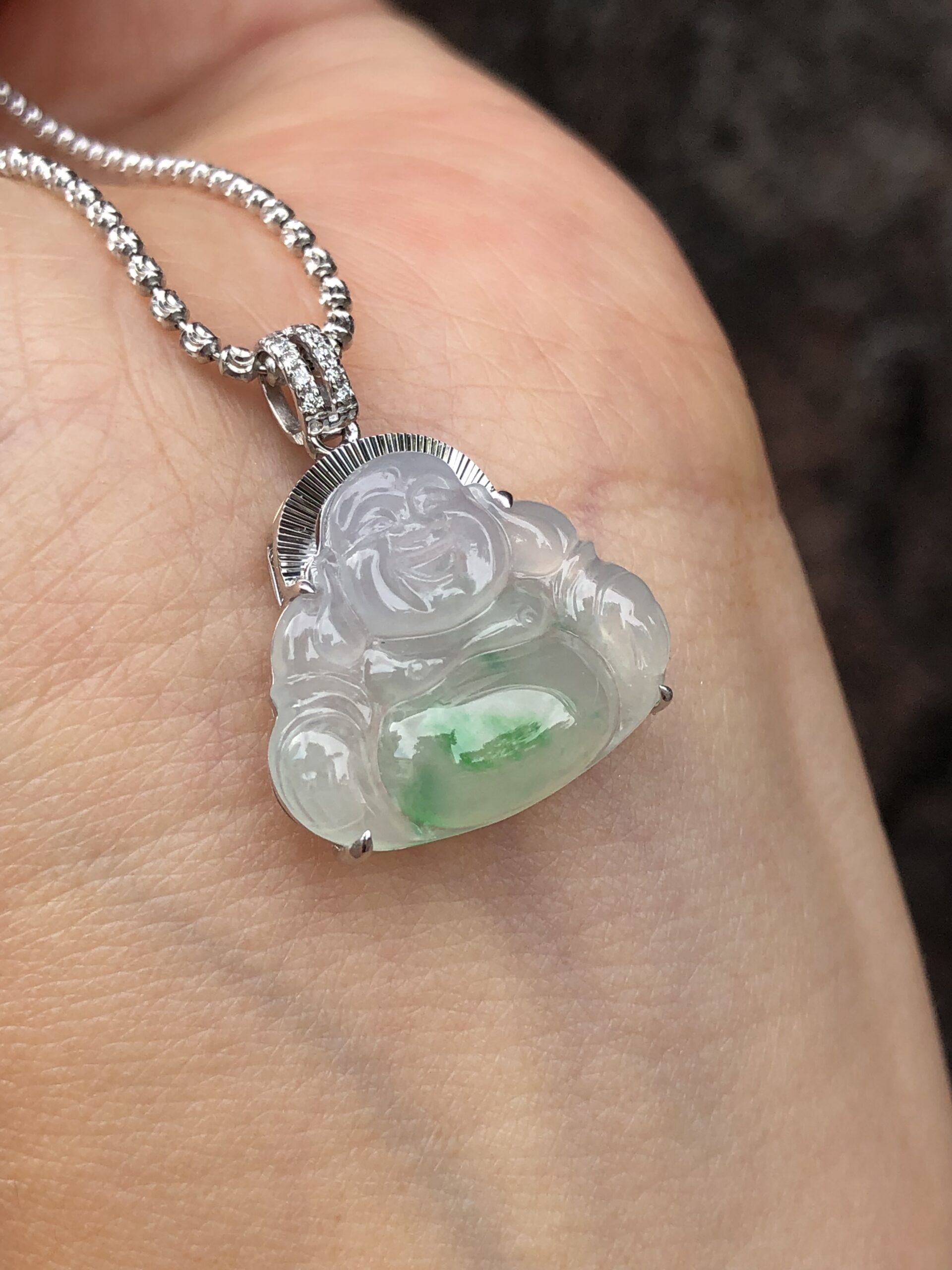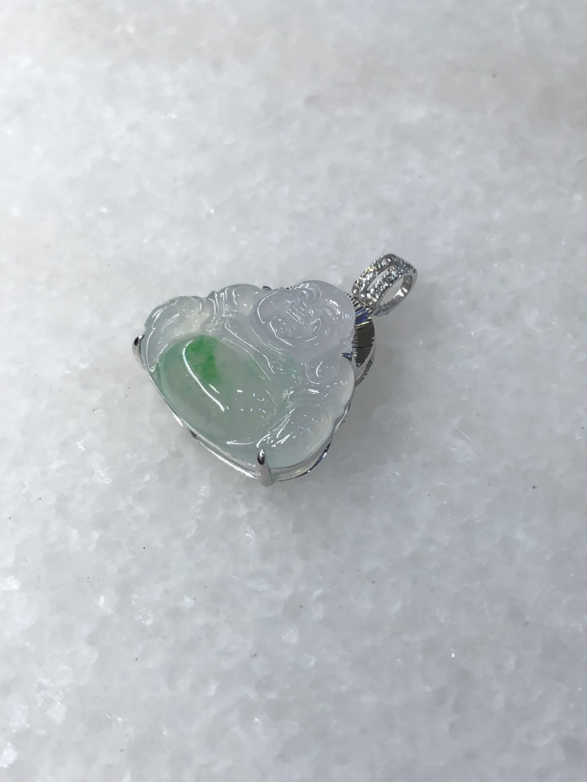 Meaning of wearing Buddha pendant: Laughing Buddha is known as Hotei among the Chinese and is considered very auspicious. His large protruding belly is symbolic of happiness, luck and prosperity. Wearing a jade Laughing Buddha pendant is believed to protect the person who wears it.