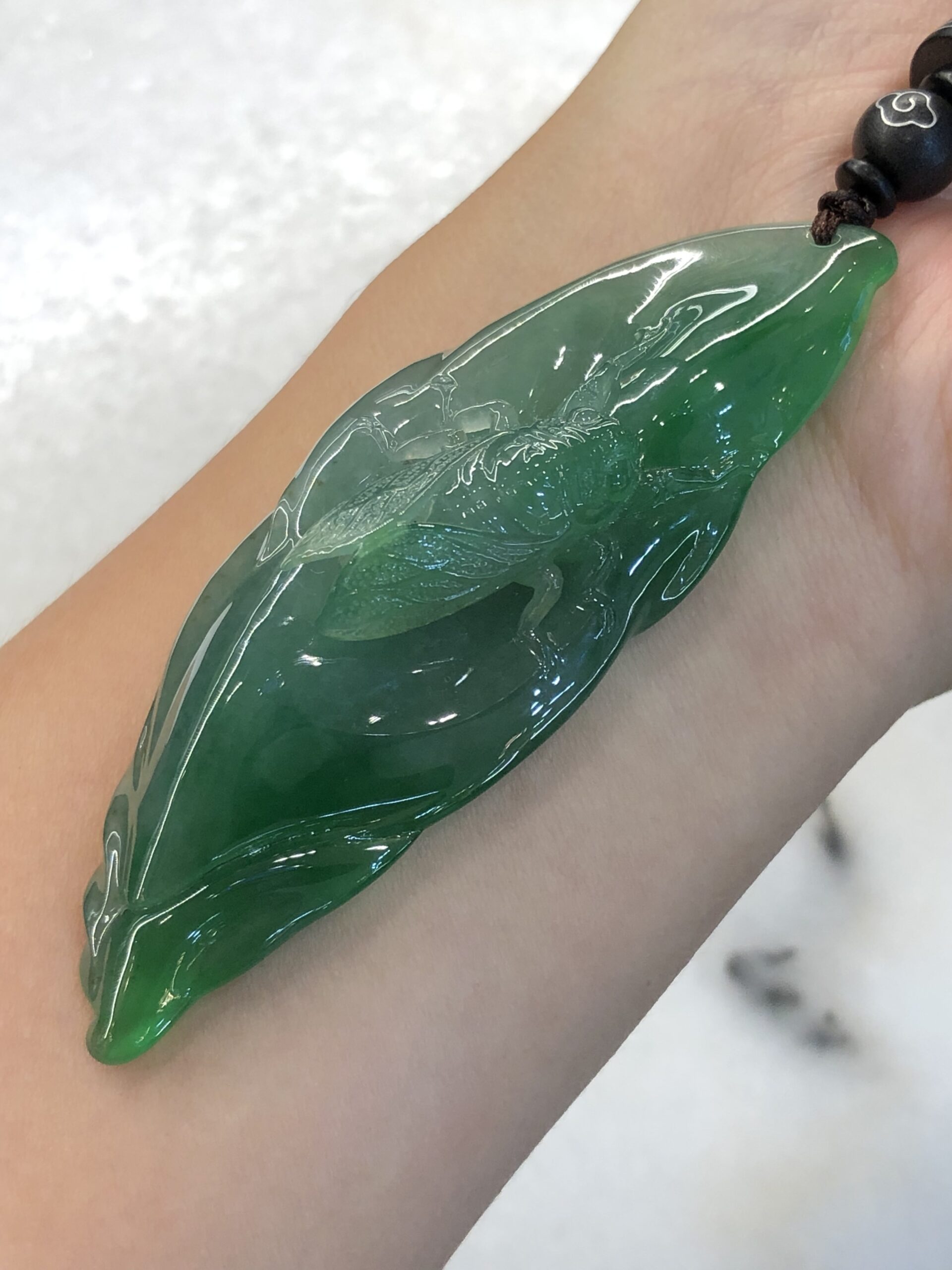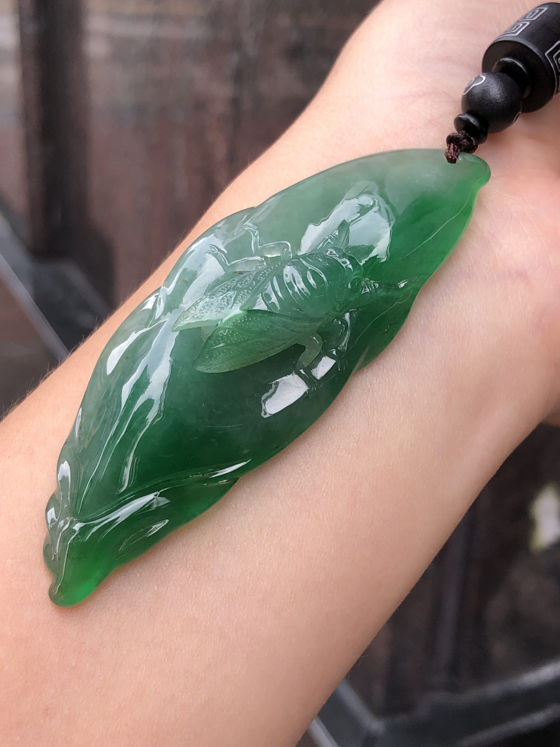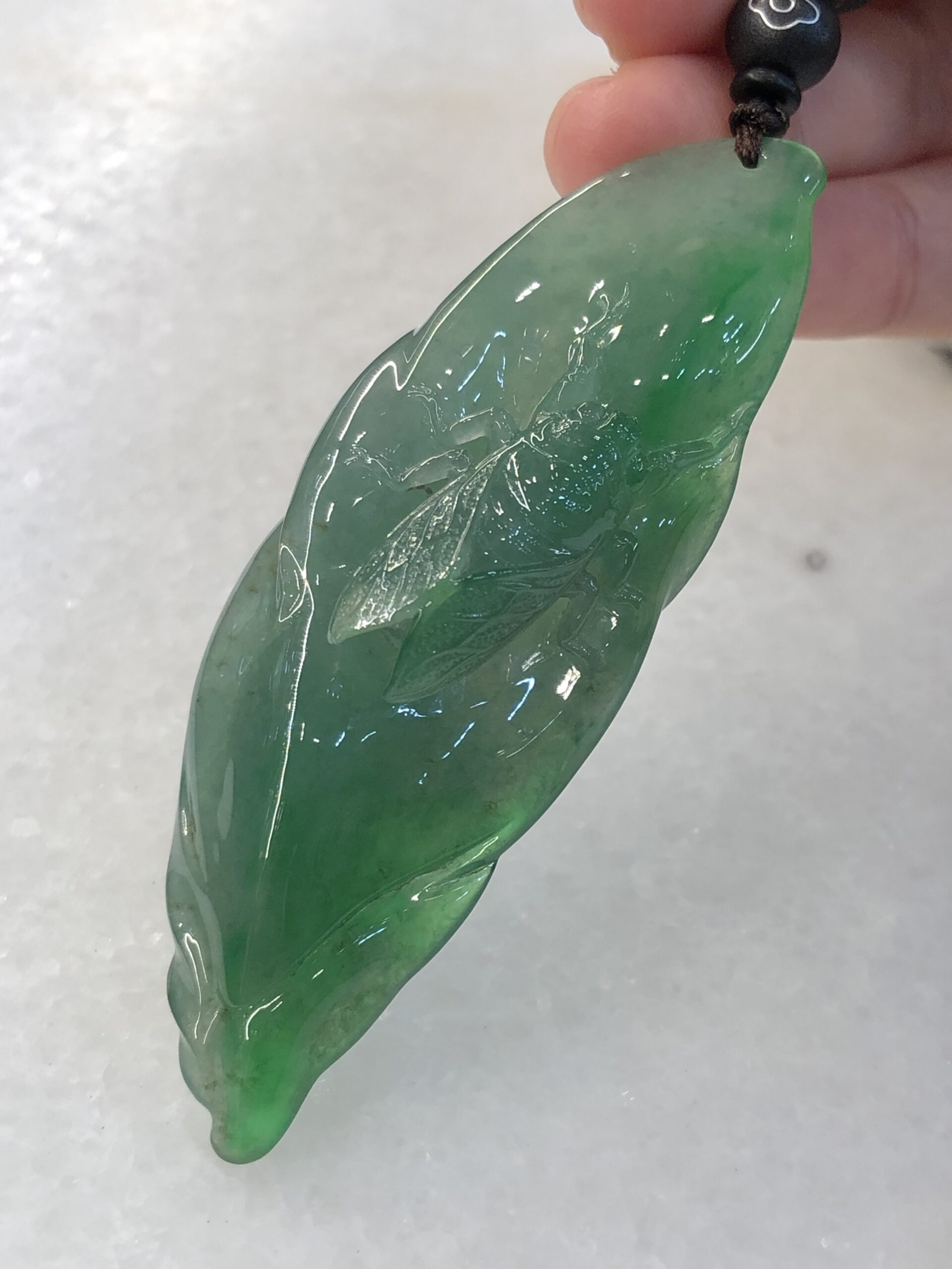 Meaning of cicada on leaf: In Chinese culture, the cicada is revered as a symbol of rebirth, immortality, and protection from evil, while the leaf represents growth and renewal. Together, they embody the themes of transformation, vitality, and enduring prosperity — making this pendant not only a work of art but also a powerful talisman of good fortune.